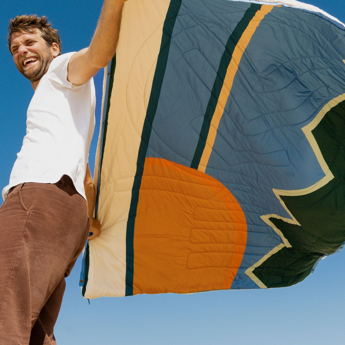 Fold and snap the blanket together to create a single sleeping bag -