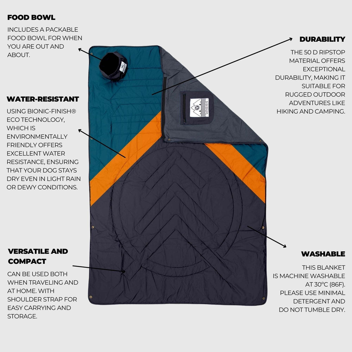 This furry fundamental can be used in a variety of ways, including to protect your furniture from hair or avoiding dirty car seats after outdoor activities. Includes a packable food bowl for when you are out and about. -